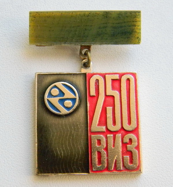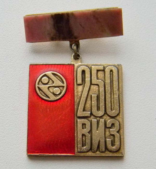 ![]() Материал: алюминий, камень. Крепление: подвеска, булавка. Значок "ВИЗ. 250 лет. Участнику торжественного заседания. Ноябрь 1976г." ![]() Материал: алюминий, камень. Крепление: подвеска, булавка. |
