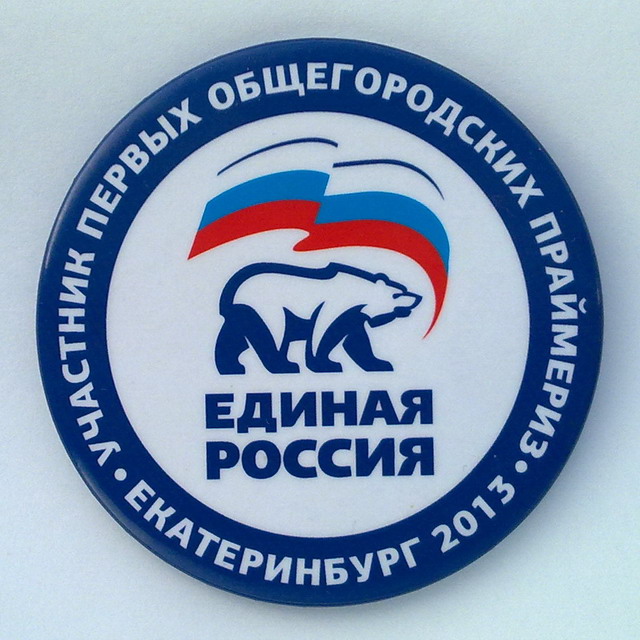 Закатной значок "Единая Россия. Екатеринбург 2013. Участник первых общегородских праймериз."