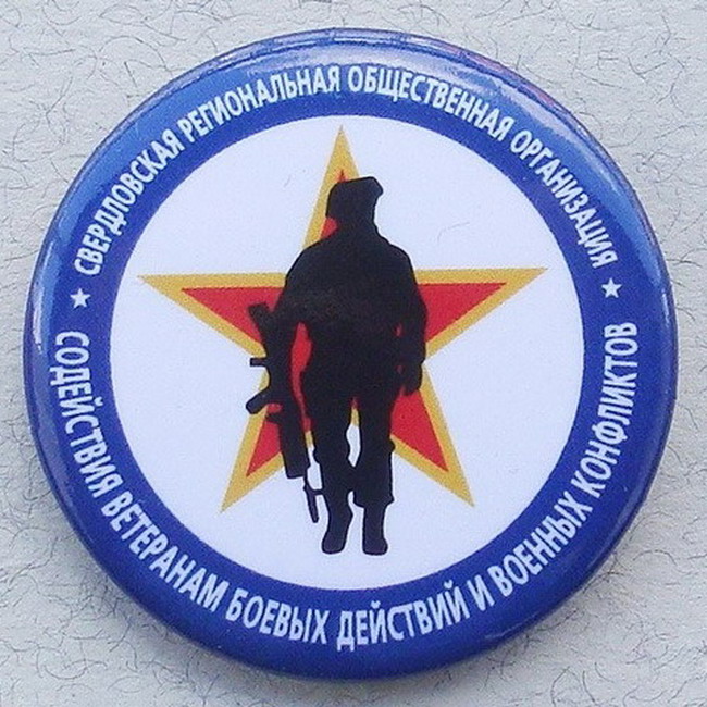 Закатной значок "Свердловская региональная общественная организация содействия ветеранам боевых действий и военных конфликтов."