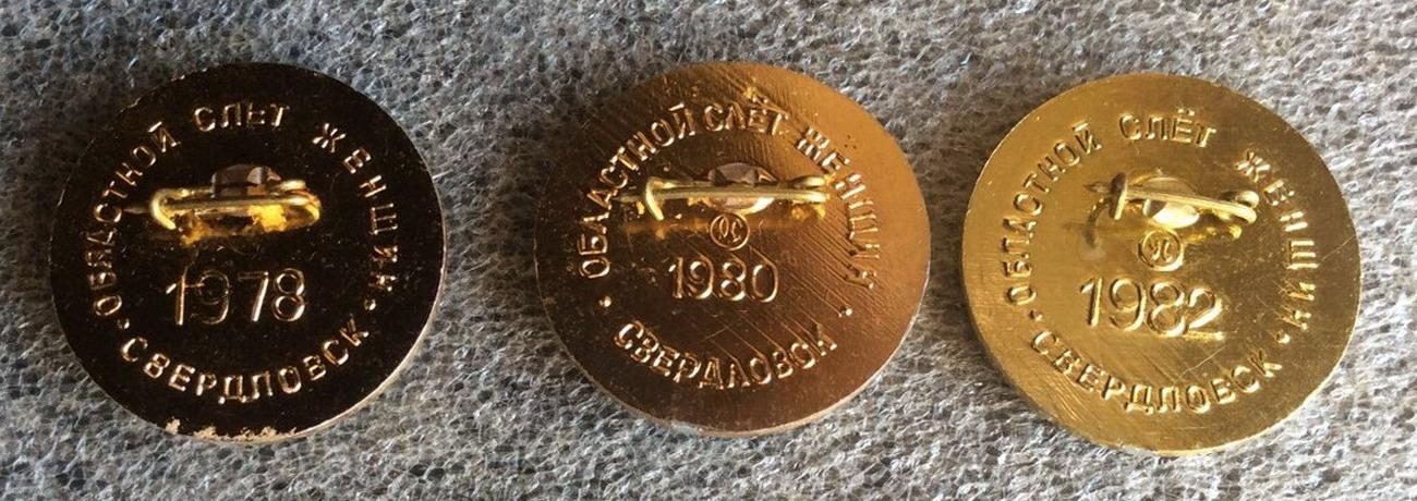 Значки "г.Свердловск. Областной слёт женщин. 1978, 1980 и 1982 года."