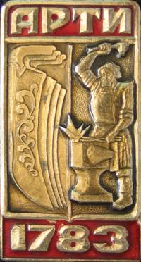 Арти — посёлок городского типа в Свердловской области России, административный центр Артинского городского округа. Посёлок расположен на реке Артя́ (приток Уфы), в минимуме 169 км. и максимуме 203 км. к юго-западу от Екатеринбурга. И в 62 км. к юго-востоку от Красноуфимска. ![]() фото-fromblogger.com Значок "Арти. 1783" ![]() Значок выпускался в двух вариантах: золотистый и серебристый. |