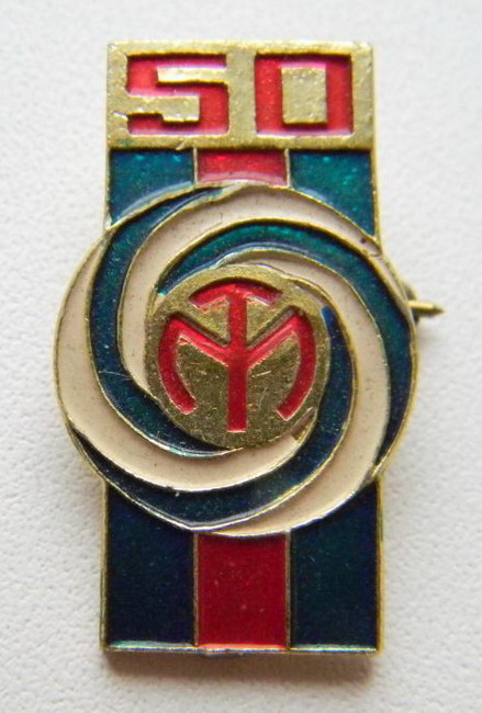Значок "г.Свердловск. Турбомоторный завод. 50 лет." тип 1.