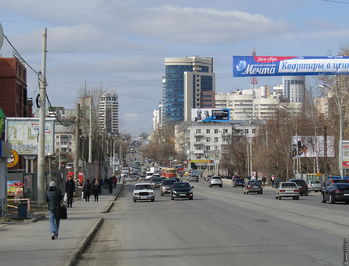 Вид от здания УрФУ (ул.Куйбышева, 48) в сторону ул.Луначарского.