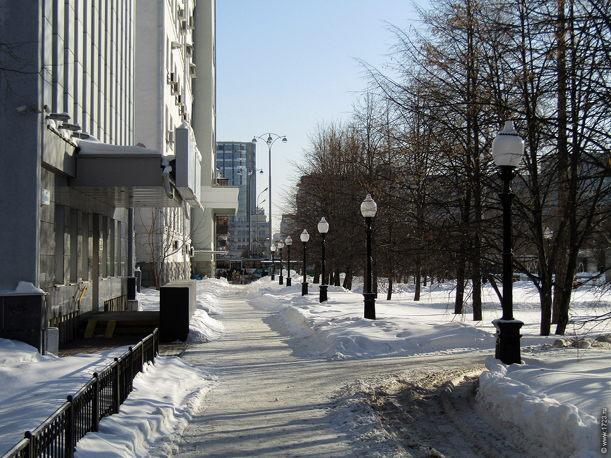Вид от Ленина в сторону Малышева. ![]() Вид от Ленина в сторону сквера Попова (Нуровский сквер). |