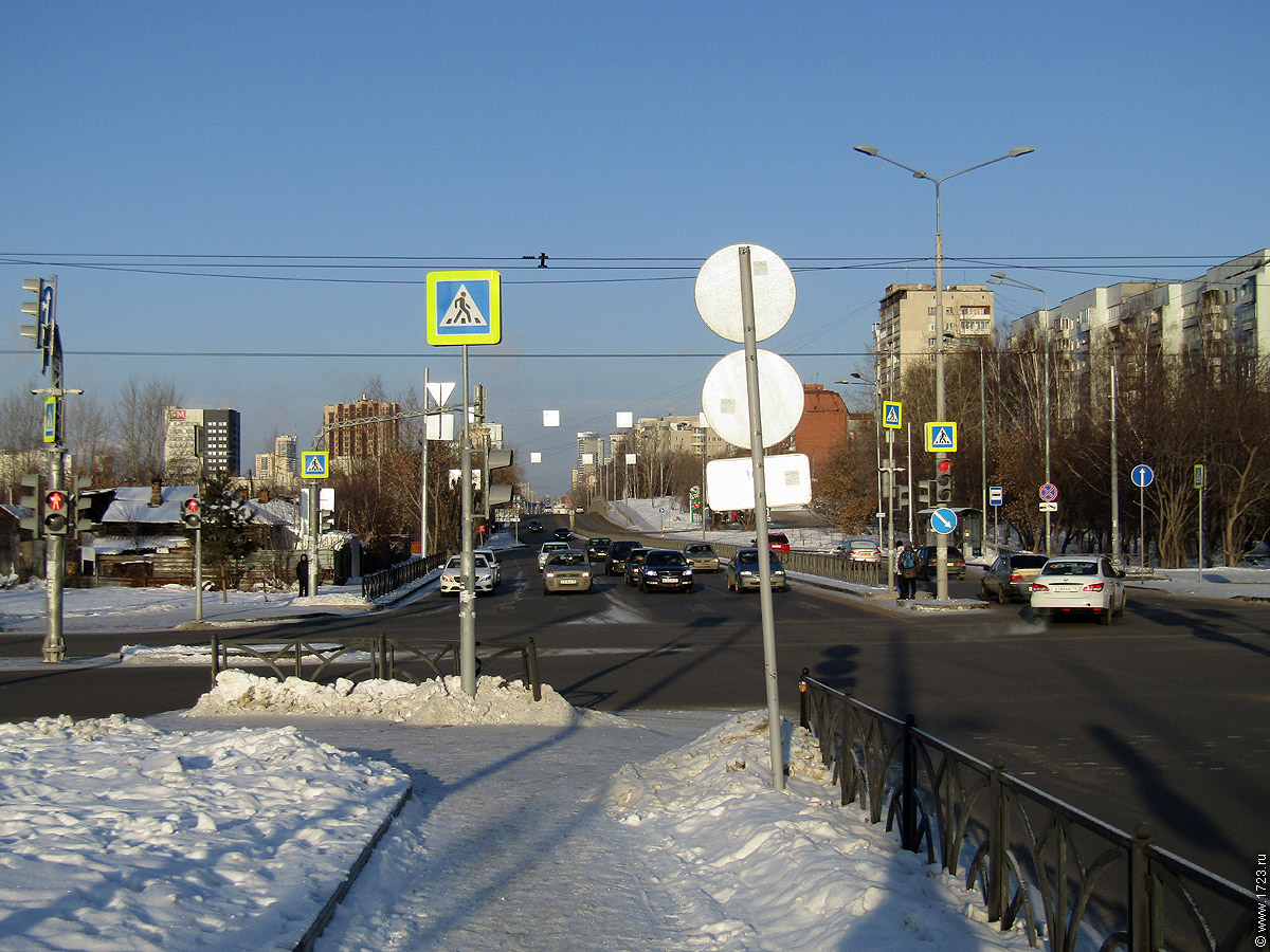 Вид от Щорса в сторону Фурманова. ![]() Вид от Щорса в сторону Циолковского. В центре автобусная остановка "Шаумяна" (автобус №53). |