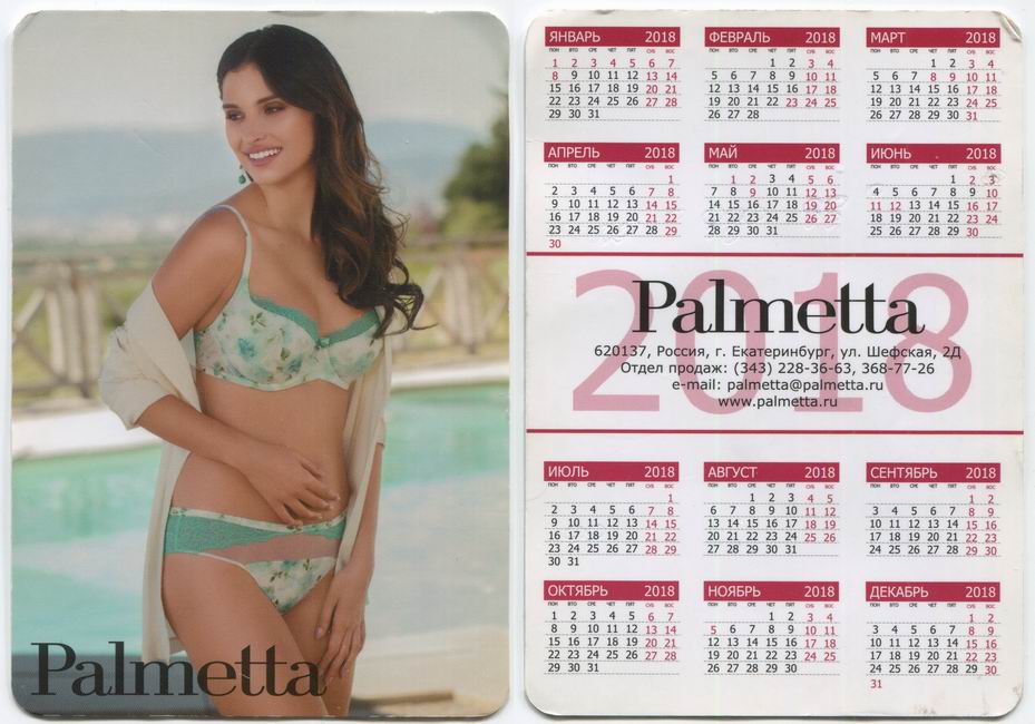 Карманный календарик "г.Екатеринбург. Компания «Palmetta». Коллекция «Palmetta». 2018 г."