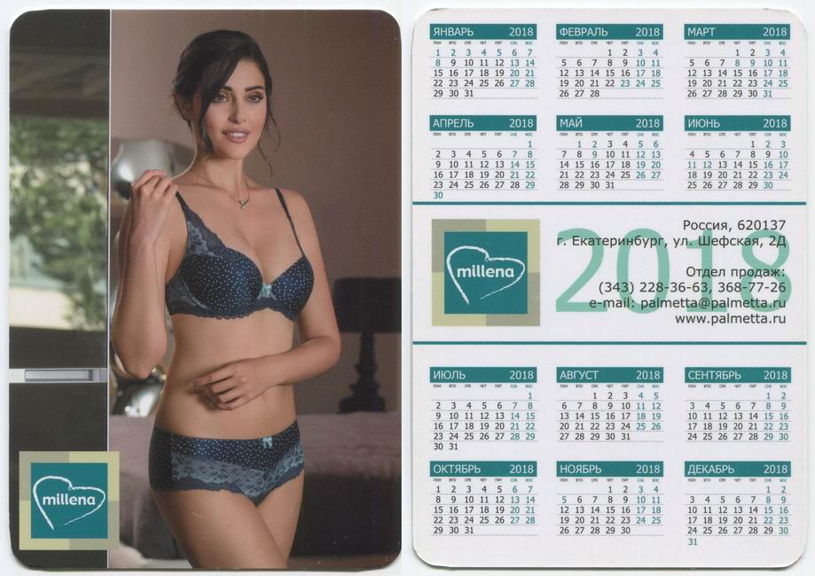 Карманный календарик "г.Екатеринбург. Компания «Palmetta». Коллекция «Millena». 2018 г."