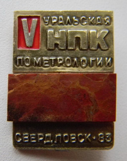 Значок "г.Свердловск. V Уральская НПК по метрологии. 1983 г."