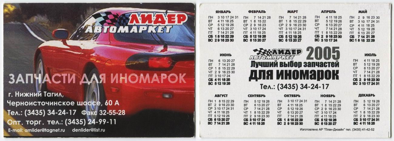 Карманный календарик "г.Нижний Тагил. Автомаркет «Лидер». 2005 г."