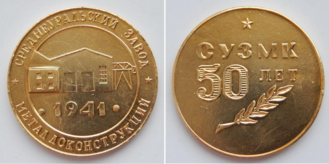 Настольная медаль "Среднеуральский завод Металлоконструкций. СУЗМК. 50 лет "