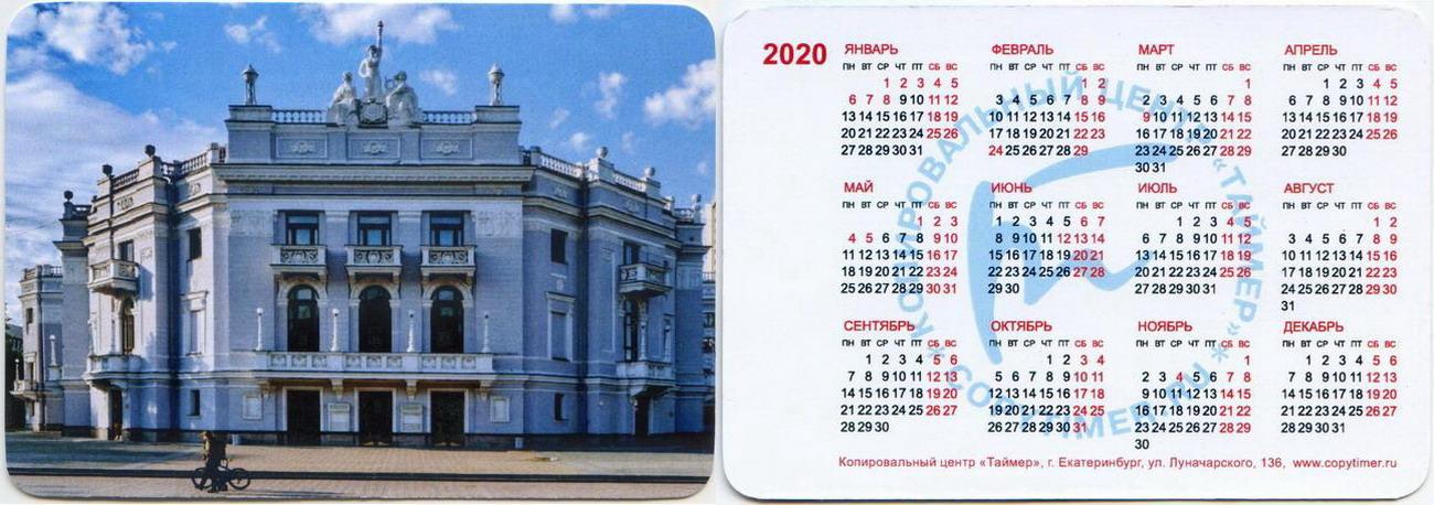 Карманный календарик "г.Екатеринбург. Копировальный центр «Таймер». Оперный театр. 2020 г."