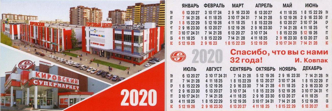 Карманный календарик "г.Екатеринбург. Супермаркет «Кировский». 2020 г."
