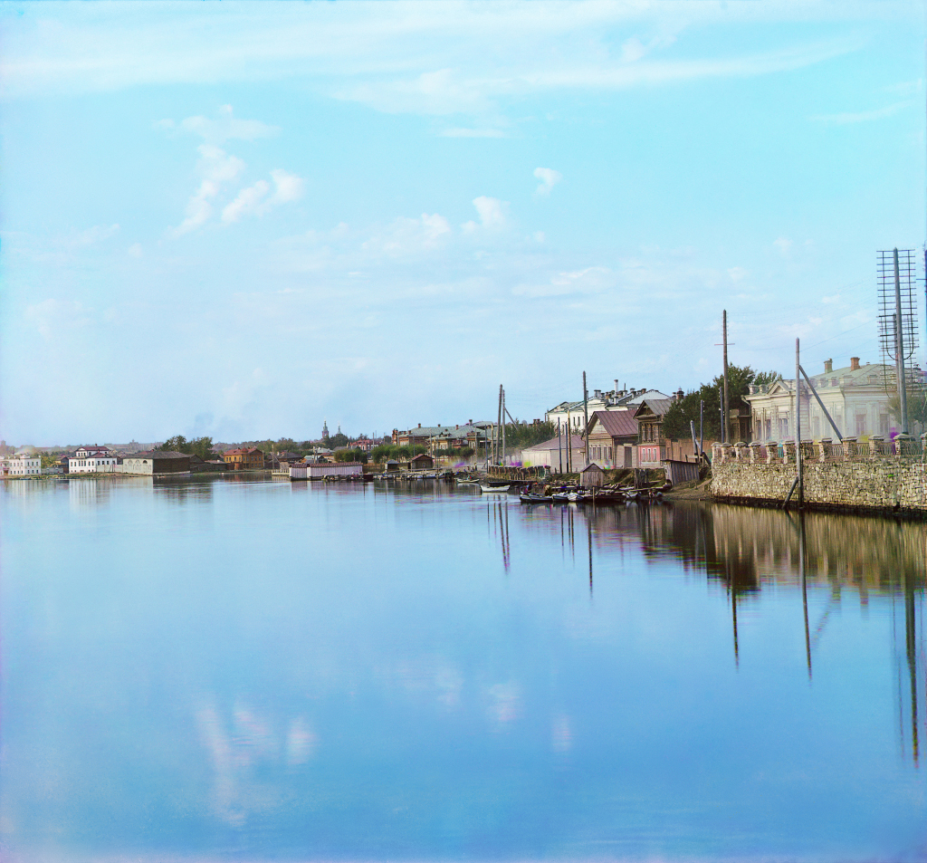![]() Вид против течения Исети; справа в перспективе - Макаровская (Симоновская) паровая мельница. Запрудой фотограф назвал плотину заводского пруда. В 1837 г., во время поезки по Уралу, в доме останавливался наследник престола Александр Николаевич. |
