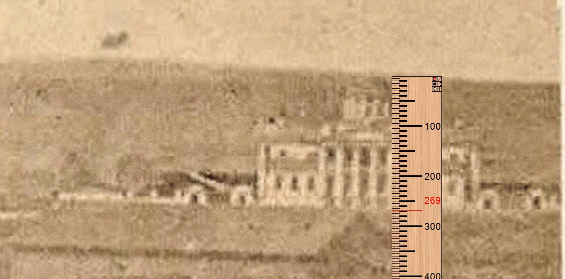 Вооружившись пиксельной линейкой я определил ориeнтировочные размеры здания со снимка. И измерил: