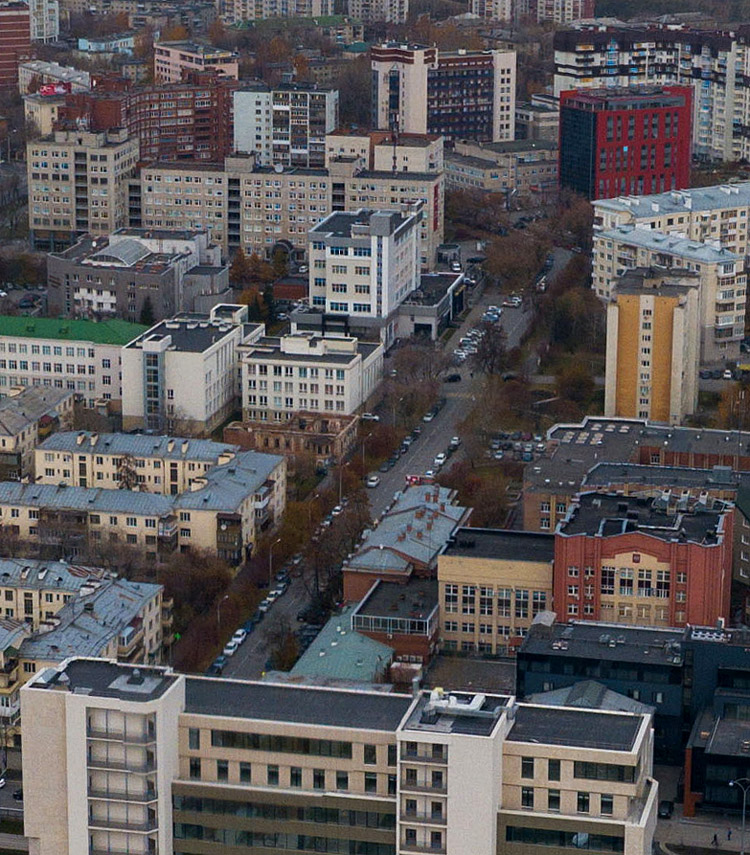 Улица Шейнкмана (участок от Ленина до Малышева) на гигапиксельной панораме снятой с ЖК "Февральская революция" в 2012г.
