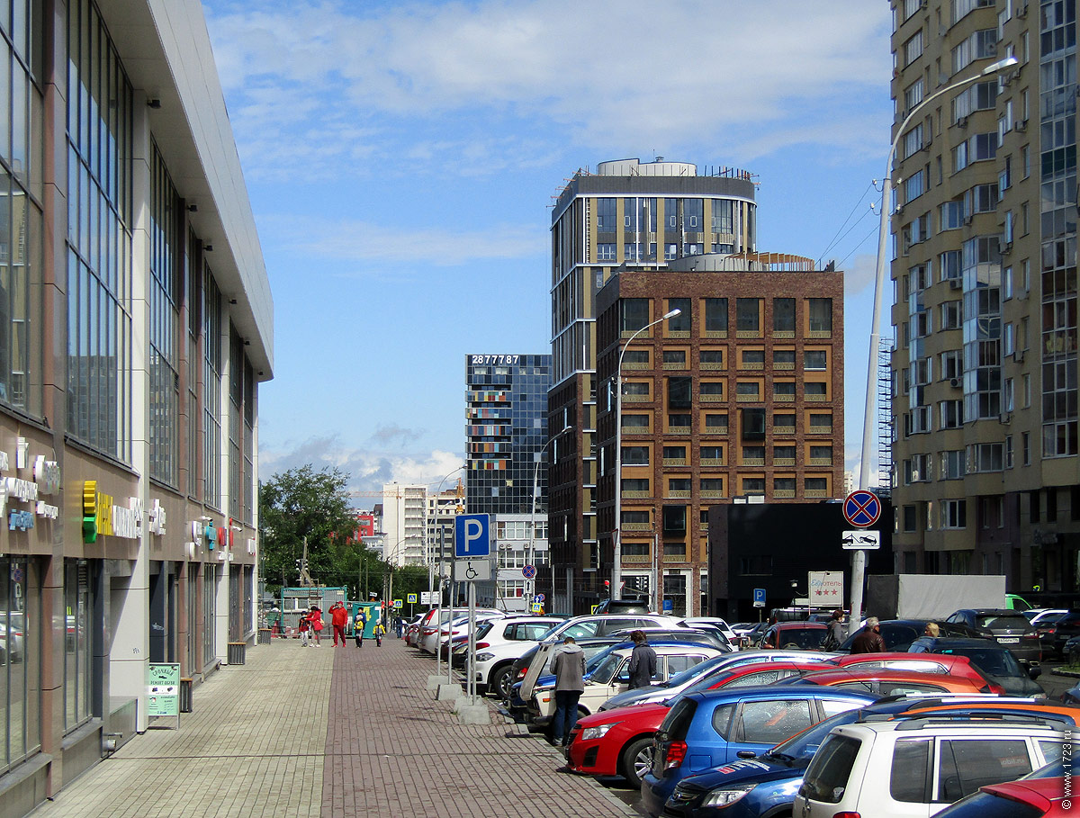 Фото З.Бубенщикова. Сентябрь 2020. Справа академия единоборств РМК (Шейнкмана, 121а). ![]() Вид в сторону Большакова. В центре ЖК "New house mART". ![]() |