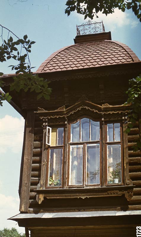 Фото 1930-х гг. Архив БТИ. Слева комплекс жилых зданий "Дом горсовета №4". В кадр попали два корпуса по пр. Ленина, 5/1 и 5/3. Справа усадьба Дрозжиловых - Перетц (пр.Ленина, 7). Далее северный флигель усадьбы Дрозжиловых - Перетц. За ним 2х эт. кирпичное здание фабрики перовых и пуховых издений Перетца. Это здание и северный флигель сейчас занимает Уральское таможенное управление (Шейнкмана, 31). На дальнем плане многоэтажный жилой дом "Восток-Сталь" (ул.Шейнкмана, 19). На переднем плане слева афишная тумба, справа киоск. Киоск восьмигранный, основание купола киоска украшено килевидными кокошниками. ![]() |