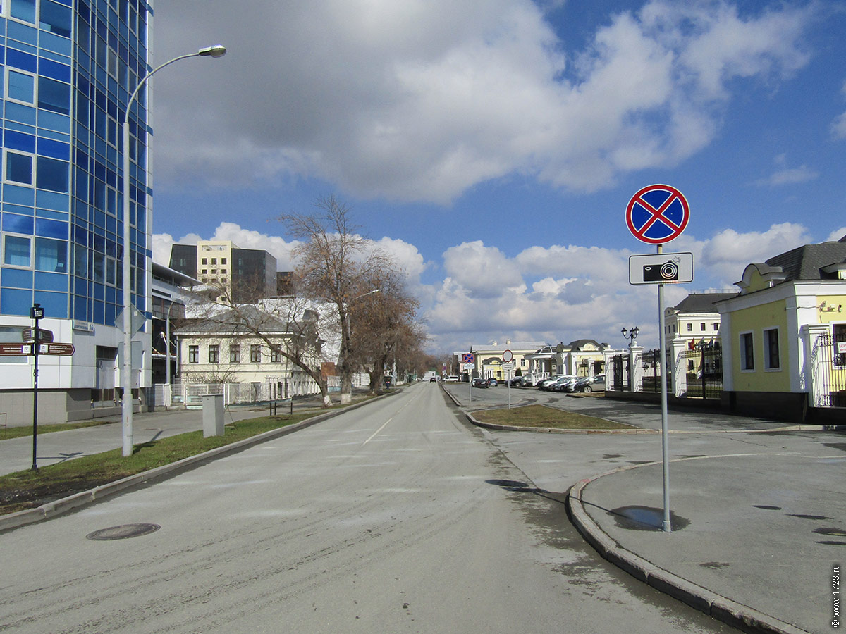 Из книги "Улицы и площади старого Екатеринбурга". Зорина, Слукин, 2005 г. Располагается в Ленинском административном районе (жилой район Центрaльный) между улицей Мaлышева и берегом реки Исети в месте ее пересечения улицей К. Маркса у Сплавного моста. Тянется с С на Ю на 300 м. Начала развиваться в первые десятилетия существования Екатеринбурга вместе с Купецкой слободой, возникшей за южной стеной крепости. По сведениям историка Н.С.Корепанова, первые свои названия она получила от фамилий поселившихся здесь купца В.И.Сапожникова, до него - обер-гитенфервалтера Федора Аврамова. С конца 1750-х гг улица стала называться Марковской - по имени сына купца, Марка Сапожникова, в 1760-х гг - 3-я Уктусская. На плане города 1810г. улица была обозначена как Зыряновская. Потом в обиход жителей вo- шло еще одно название - Отрясихинская, которое было связано с названием «питейного дома», находившегося в южном конце этой улицы. План 1845г. официально закрепил за бывшей Отрясихинской новое название- Госпитальная, так как начaло улицы шло от здания заводского госпиталя, выстроенного в 50-х гг XVIII в. Первыми поселенцами улицы были купцы, в большинстве своем старообрядцы. В конце XVIIIв. на улице появилась старообрядческая Успенская часовня (усадьба №12). Это был однопрестольный, деревянный, оштукатуренный, на каменном фундаменте храм с железной крышей, выкрашенной мaлахитовой краской. Существовал он до сноса в 1930г. , впоследствии на этом месте был устроен гараж облисполкома. В конце ХIХв. на Госпитальной жили несколько купеческих семей, одна дворянская, остальные - мещане. К 1887г. на улице насчитывалось 18 усадеб. Одним из самых известных жителей Госпитальной считался «водочный король» Альфонс Фомич Поклевский-Козелл - дворянин, действительный статский советник, владелец нескольких винокуренных, пивоваренных и стекольных заводов. В Екатеринбурге в то время за А.Ф.Поклевским-Козелл числилось пять усадеб, причем три из них располагались в кварталах улиц Покровский проспект - Дубровинская - Госпитальная. Главный особняк заводчика-двухэтажный каменный с мезонином (Госпитальная, 2) - выходил парадным фасадом на Покровский проспект. Рядом с ним, по Госпитальной, 4, стоял еще один каменный дом, поменьше, на Дубровинскую выходила третья усадьба, где находился каменный склад для пива. В главном особняке имелся оптовый склад вина, действовал и ренсковый погреб и две лавки. В одной из них хозяева торговали листовым стеклом собственного производства. Рядом во флигеле размещался водочный завод. За одним из сыновей заводчика, Викентием Альфонсовичем, в 1887 г в Екатеринбурге числилось 6 трактиров, 5 пивных лавок, 4 ренсковых погреба. Из купцов на Госпитальной жили С.П.Широков, торговавший кожевенными изделиями (его усадьба №8 выходила на Дубровинскую улицу), наследники купчихи Е.С.Бородиной (усадьба №9) и наследники купца М.В.Бородина (№17). Торговлей занимались также несколько жителей улицы из числа мещан. Ульяна Петелина (усадьба №14) торговала на Главной торговой площади бакалеей, К.И.Силантьев (№7) - кожевенным товаром. Хлебная лавка была у Суставовых, одноэтажный деревянный дом которых (№21) стоял в конце улицы, у Хлебной площади. Эта же семья держала постоялый двор. В последнем доме (№20) по четной стороне улицы жил маляр И.И.Шамшурин. Считалось, что его дом (снесен в 1930-е гг) был построен еще в