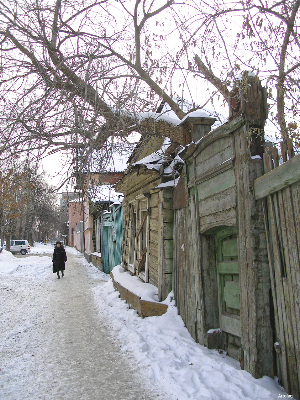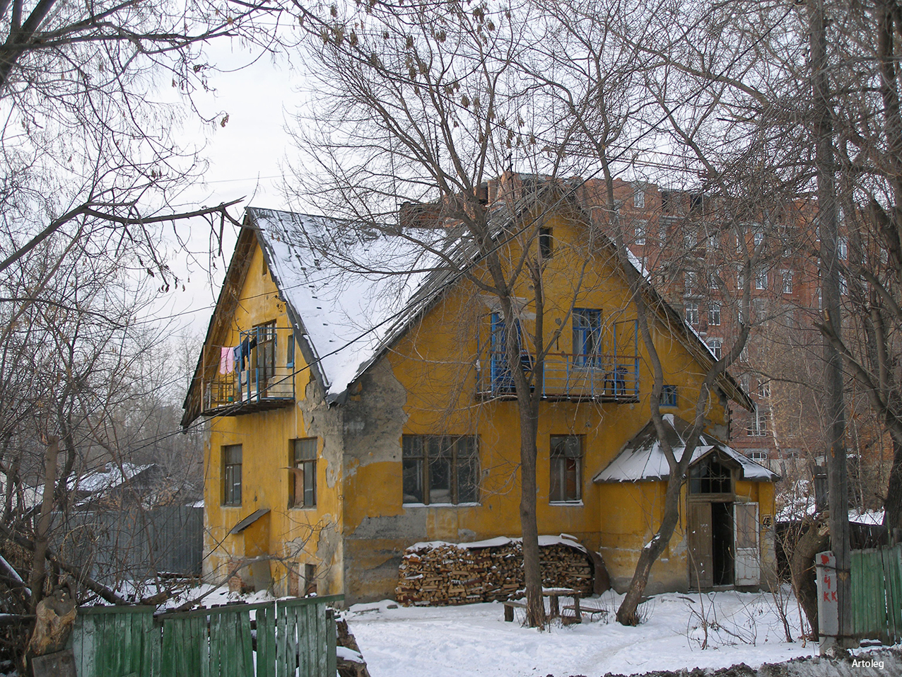 Сохранились первые три дома слева (стоят в руинированном состоянии), остальные деревянные здания на фото снесены. Фото Г. Мокрушин. Архив "Музей истории Екатеринбурга". ![]() |