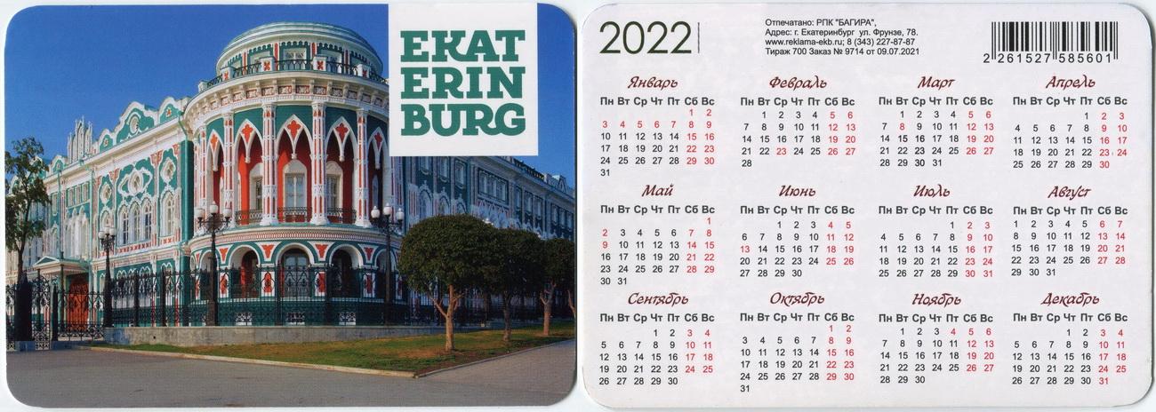 Карманный календарик "г.Екатеринбург. EKATERINBURG. 2022 г."