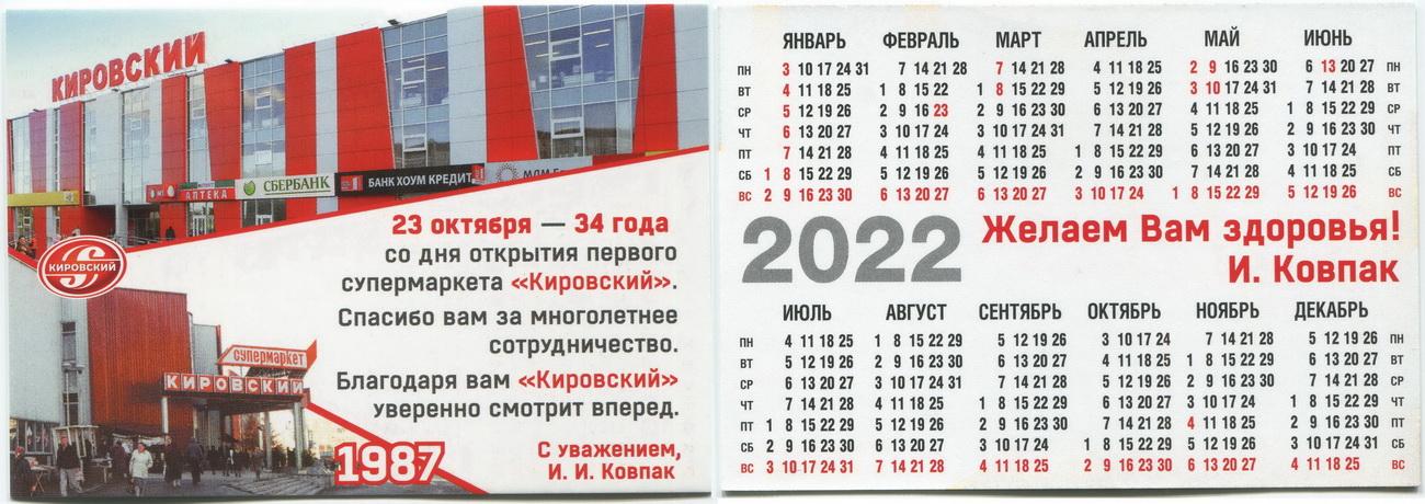 Карманный календарик "г.Екатеринбург. Супермаркет «Кировский». 2022 г."