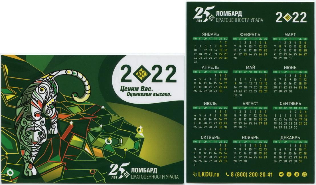 Календарик "Ломбардная компания «Драгоценности Урала». 2022 г."