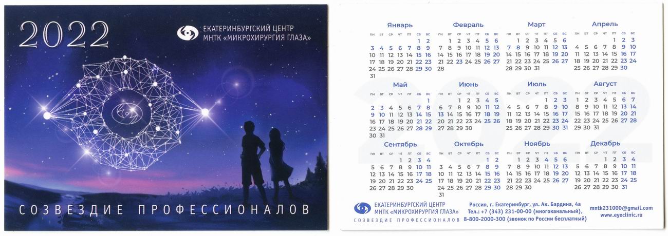 Карманный календарик "г.Екатеринбург. Екатеринбургский центр МНТК «Микрохирургия глаза». 2022 г."