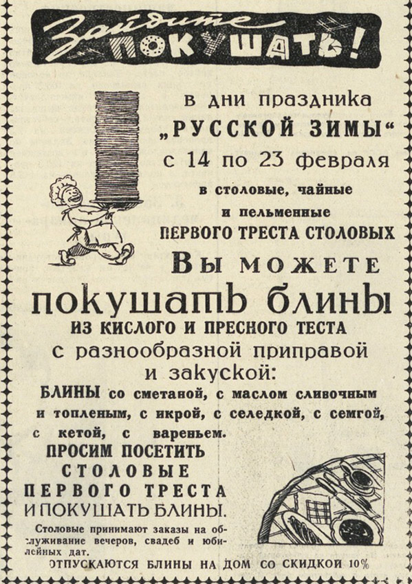 В дни праздника "Русской зимы" вы можете покушать блины.