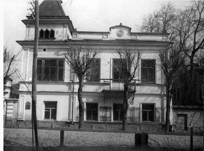 Металлический козырёк над входом утрачен. Следующий 2х эт. дом – это особняк В. А. Бибикова (ул.Розы Люксембург, 3). Уже несколько лет здание закрыто фальшфасадом. На дальнем плане идет строительство жилого дома по ул.Розы Люксембург, 9 / Энгельса, 11 (дом будет сдан в 1980г.) Фото Владимирский Ю.А. 1979г. Архив «Музей архитектуры и дизайна». ![]() |