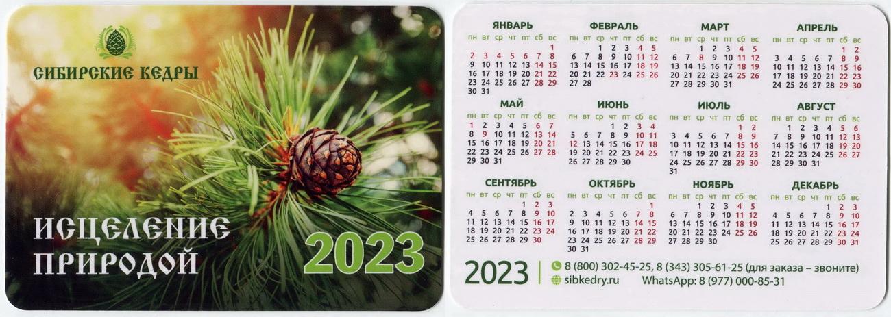 Карманный календарик "г.Екатеринбург. Магазин товаров для здоровья «Сибирские кедры». 2023 г."