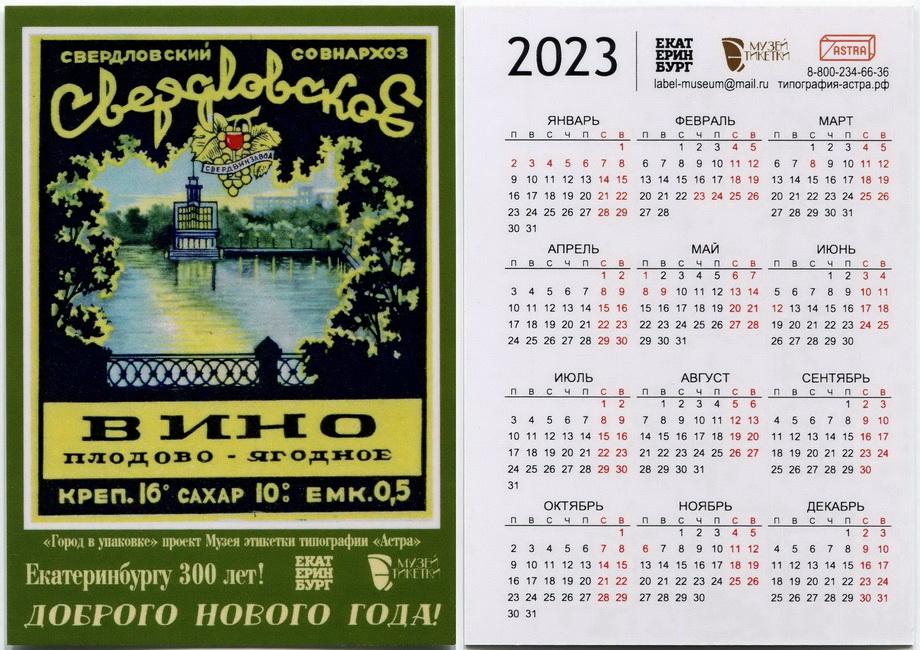Карманный календарик "г.Екатеринбург. Музей этикетки. 2023 г."