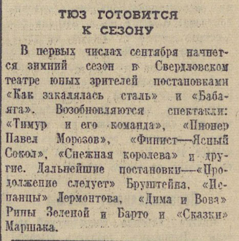 Возобновляются спектакли. "Уральский рабочий" 17 июля 1941г. ![]() |