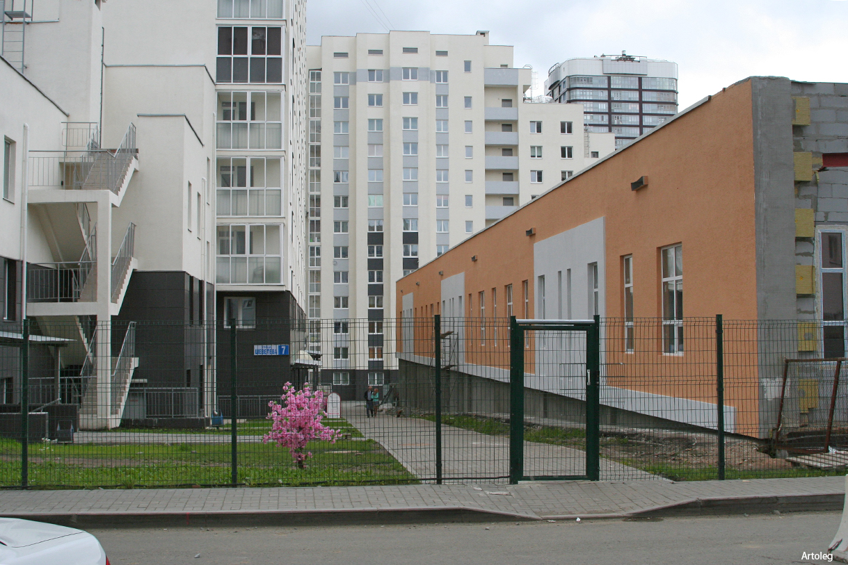 Вид от паркинга Шевелева 5а (справа) на высотку Юмашева, 12 и в сторону ул. Папанина. ![]() Слева видно уровень на сколько подняли новую площадку над застроенной улицей Данилина. ![]() Вид на детский садик № 414 (Юмашева, 4а). Раньше с этой стороны, немного левее, был вход в детский садик. Сейчас проход застроен. ![]() Въезд в паркинг, Шевелёва 5а. ![]() Вид на трехэтажку Папанина, 4а. ![]() Проход на верхний двор на стилобате между высоткой Шевелёва 7 и паркингом Шевелёва 5а. ![]() Детская и спортивные площадки на стилобате. Слева - Шевелёва, 5. .Вид на улицу Шевелёва от жилого дома №7. ![]() -------------------- |