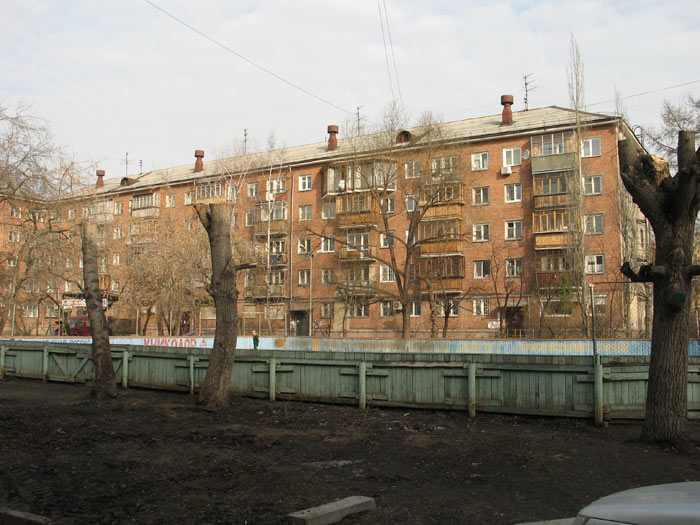 Пятиэтажный четырёхподъездный кирпичный жилой дом.