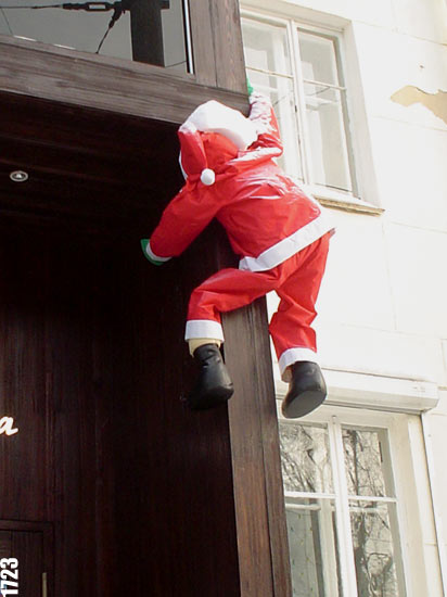 Всего лезут вверх по фасаду пять Дедов Морозов. Два из них явно несовершеннолетние