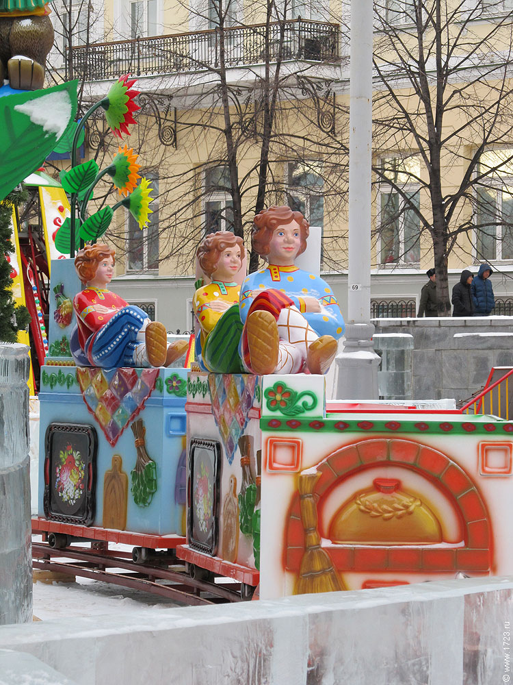 Ниже рассмотрим работы фестиваля ледовой скульптуры. "В ожидании манны небесной". "Муза победы". "Диво". "Дурак ты, Иван!". "Людям на потешенье, всему миру на удивленье". "Под дудку Ваньки-Дурака кони пляшут трепока". "А где-то на краю земли...". "Растислава". "Кутузов побеждает Змея Наполеоныча". "Жарптичий вихрь". 31.12.2011