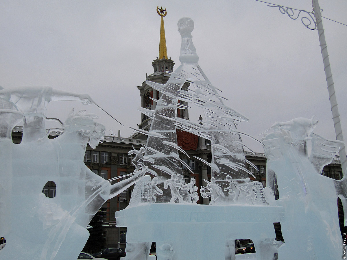 Вдоль пр.Ленина расположены восемь композиций изо льда на тему футбола.