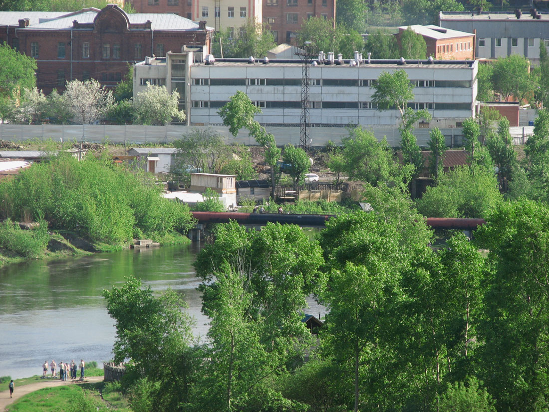 Взгляд Колмогорова. Вид 16. За трубами прокинутыми через Исеть находится пешеходный мост в районе ул.Кондратьева - Крылова. 04.06.2007
