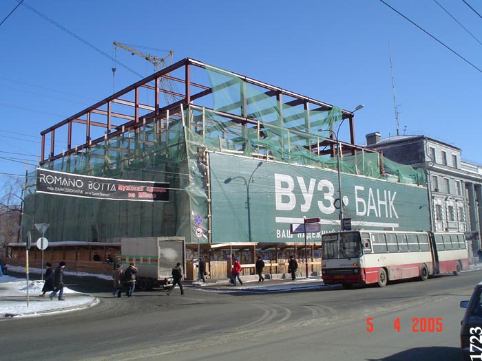Стройки Екатеринбурга - 32 Жилой комплекс по ул.Лермонтова. Фото март 2005 года Жилой комплекс по ул.Лермонтова. Фото март 2005 года Реконструкция здания на углу ул.Малышева и пер.Банковский. На снимке дворовой фасад. Фото март 2005 года Торгово-офисный центр на ул.Карла Либкнехта. Фото март 2005 года Торгово-офисный центр на ул.Карла Либкнехта. Фото март 2005 года Торговый центр «Гермес Плаза». Вид на встроенную автостоянку. Фото апрель 2005 года Реконструкция здания на углу ул.Малышева и пер.Банковский. Снимок со стороны ул.Малышева. Фото апрель 2005 года