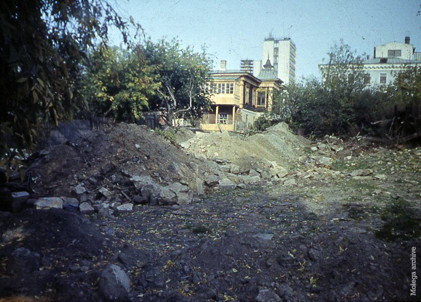 Слева в деревьях белая будка - это вход в бомбоубежище.