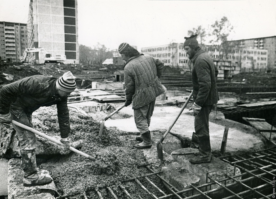 На переднем плане забивают сваи под жилой дом по ул.Боровая, 21а.