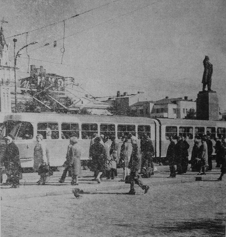 Свердловск. 1977г. Фото из справочника «Свердловск. Городской пассажирский транспорт». Издательство «Уральский рабочий», 1977 г.. Текст под фото из книги. Оцифровка книги Родионова Татьяна. Памятник Я.М. Свердлову. Трамвайная остановка на площади 1905 года. Улица Челюскинцев. Проспект Ленина. Стоянка экспрессных автобусов около железнодорожного вокзала. Привокзальная площадь. Стоянка маршрутного такси «Универмаг». 02.11.2021